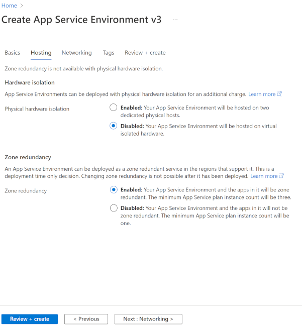 For Zone redundancy, select Enabled or Disabled.