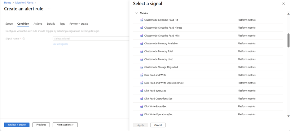To learn more about metric alerts and how to create alert rules, see Metric alerts and Create Azure Monitor alert rules.
