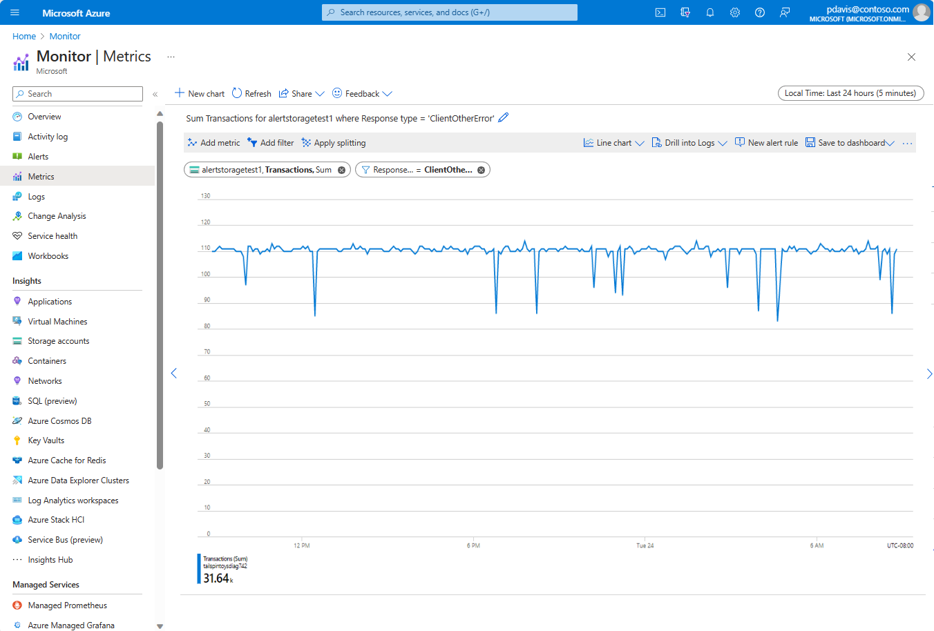 After you select the filter values, click outside the filter picker to complete the action. The chart shows how many storage transactions have failed.