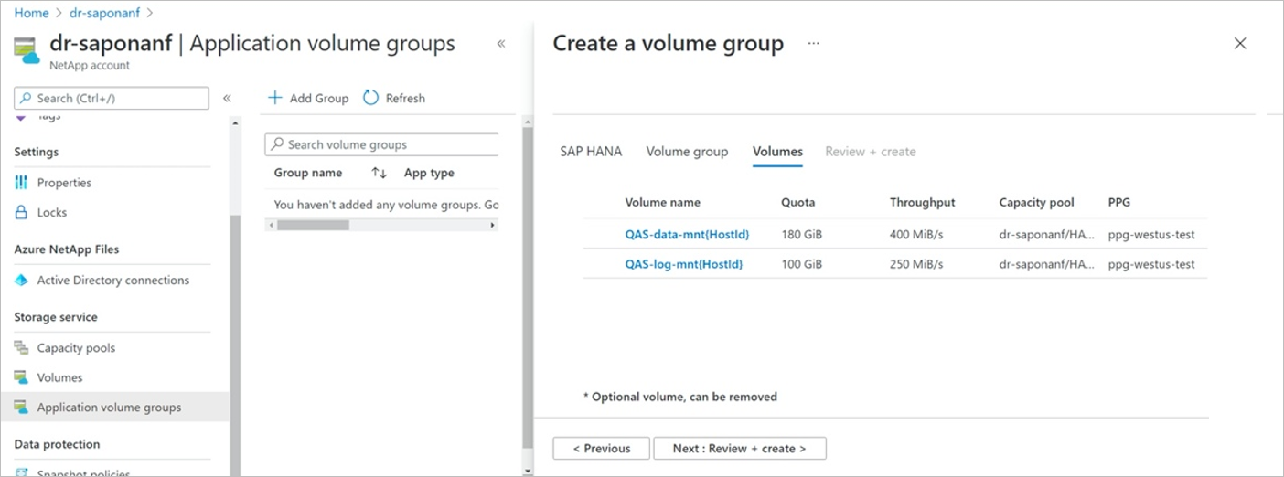 After you navigate through the volume groups, select Create All Groups to create all the volumes for the HANA hosts you're adding.