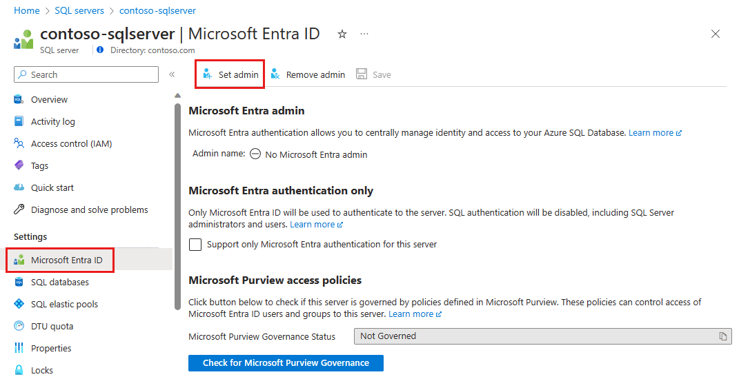 Set Microsoft Entra admin