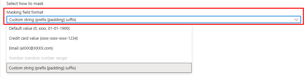 AdventureWorksLTdatabase.To add a mask for any column in your database, at the top of the Dynamic Data Masking configuration page, select Add Mask to open the Add Masking Rule configuration page.