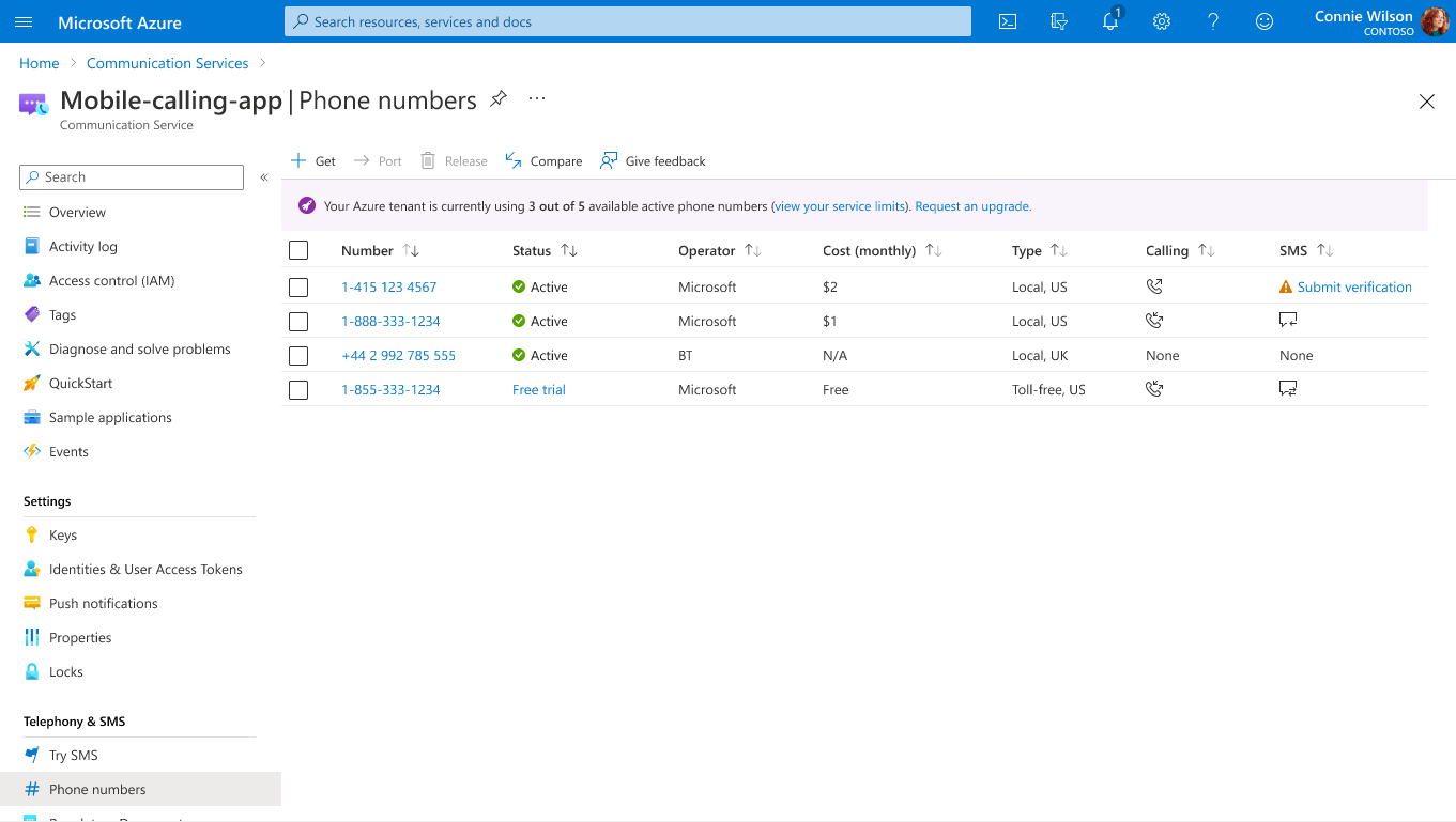 Quickstart: Get and manage phone numbers