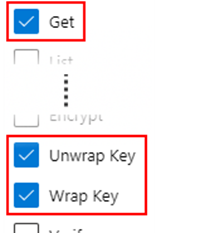 Under the Key permissions drop-down menu, select Get, Unwrap Key, and Wrap Key permissions: