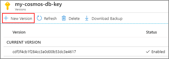 After the key is created, select the newly created key and then its current version.