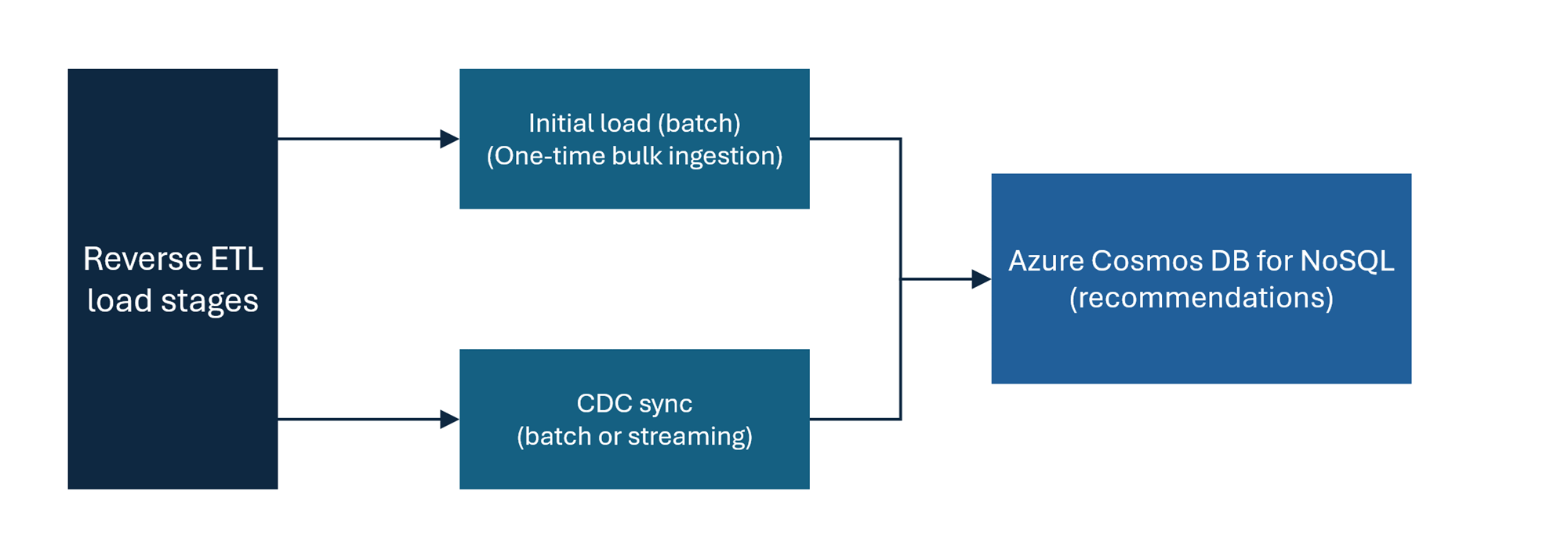 Initial load: The initial load is a one-time batch process step to ingest all historical data from Delta Tables into Azure Cosmos DB for NoSQL. It sets the foundation for your reverse ETL pipeline by ensuring the operational data store has complete historic data. This load is a fundamental step before starting incremental sync of data.