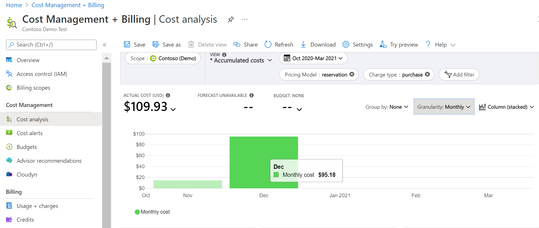Enterprise Agreement and Microsoft Customer Agreement billing readers can view accumulated purchases for reservations in Cost Analysis.