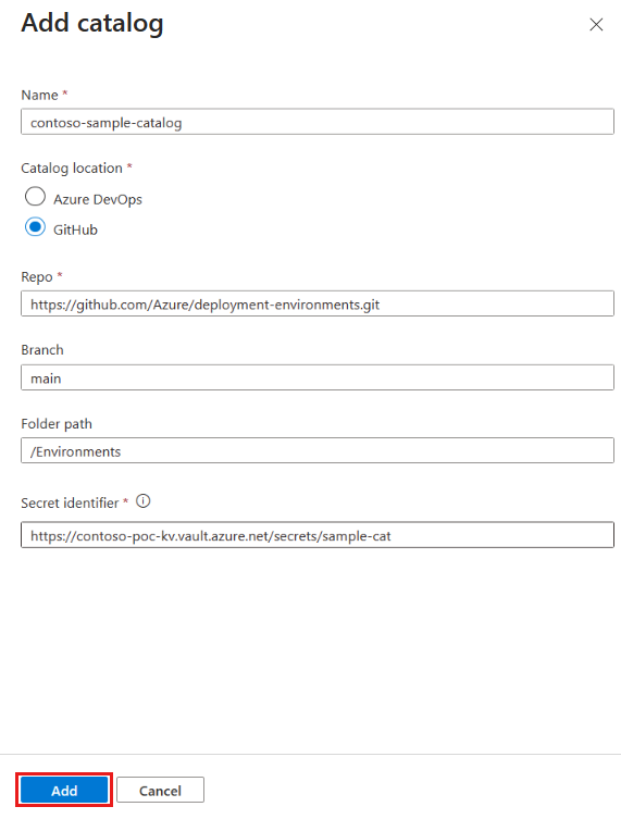 - Add a catalog from Azure Repos or GitHub