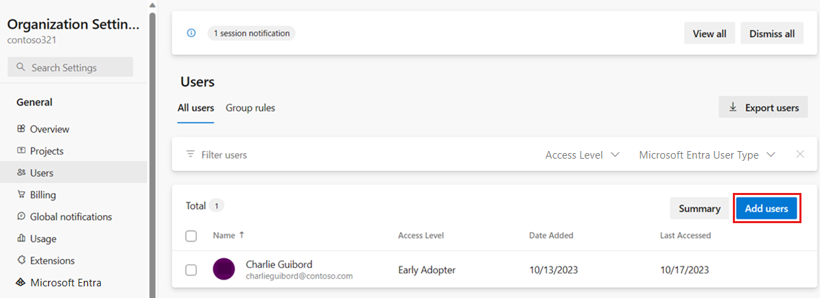 On the Users page, select Add users.