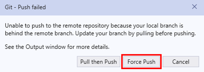 Never force push a branch that others are working on. For more information, see Rebase and force push guidelines.