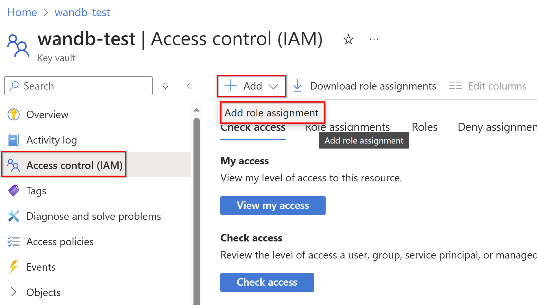 Add your Weights & Biases API key as a Secret to your Azure Key Vault