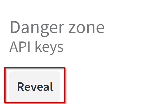 Under API Keys, select Reveal to access your key and copy it to the clipboard.