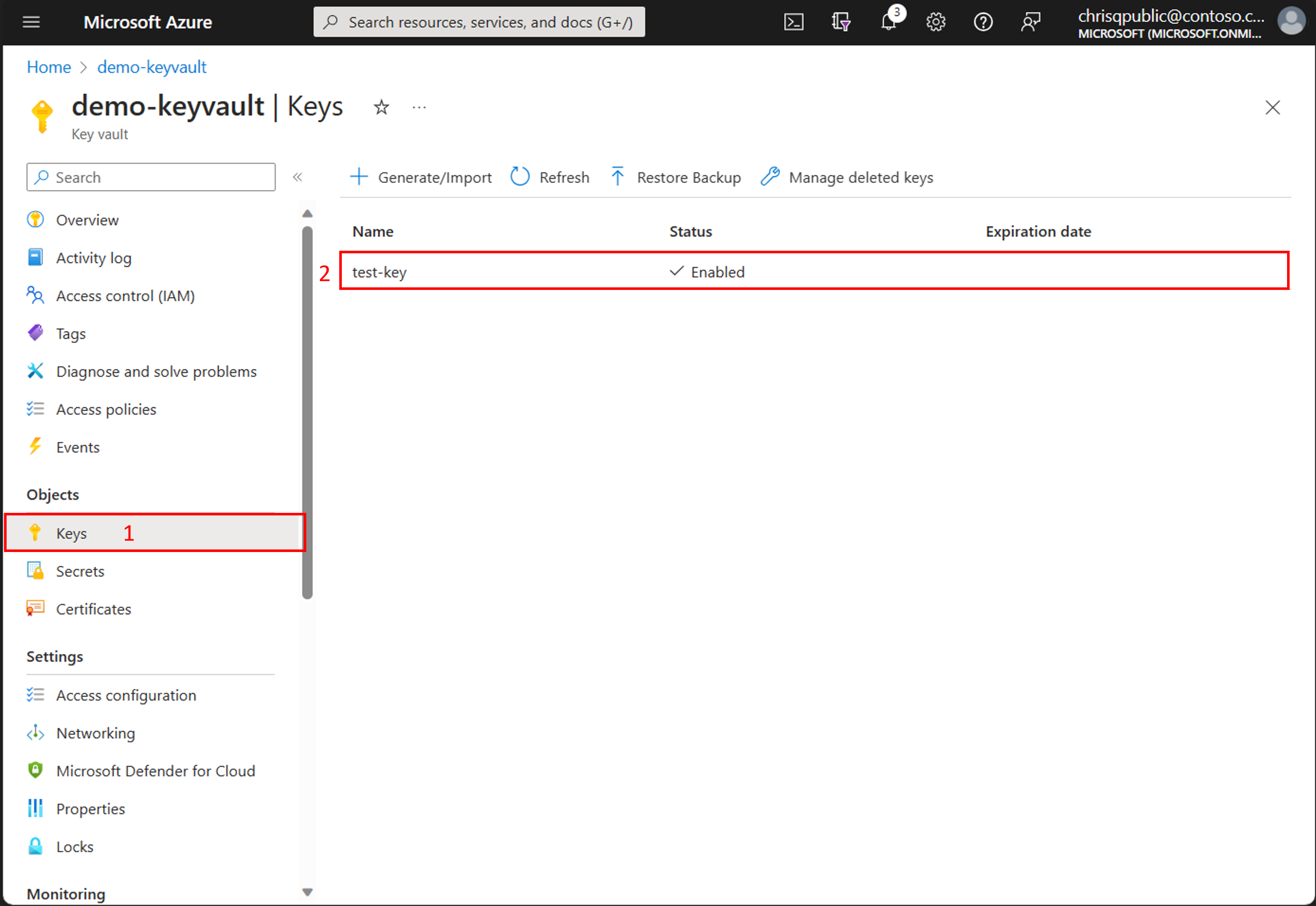 Add a key for the DICOM service in Azure Key Vault. For steps, see Add a key in Azure Key Vault. Customer-managed keys must meet these requirements: