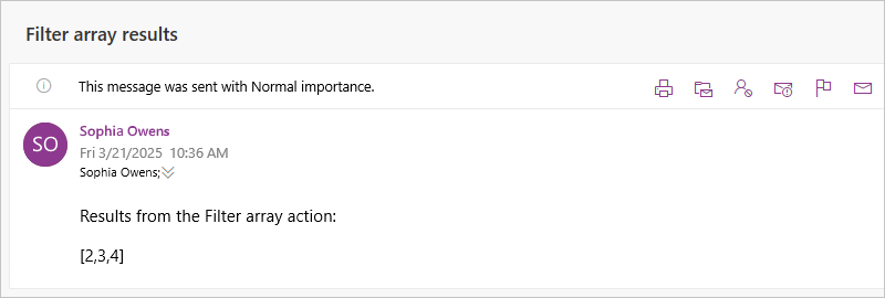 If you use the Office 365 Outlook - Send an email action, the following example shows the result: