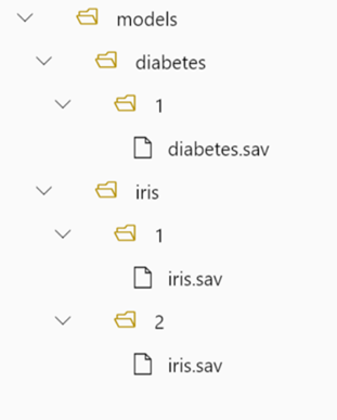 This section uses this example of a local folder structure to show how you can specify models for use in an online deployment:
