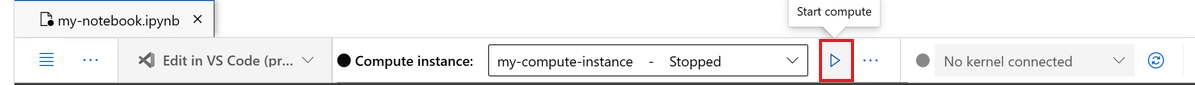 2. If the compute instance is stopped, select Start compute and wait until it's running.