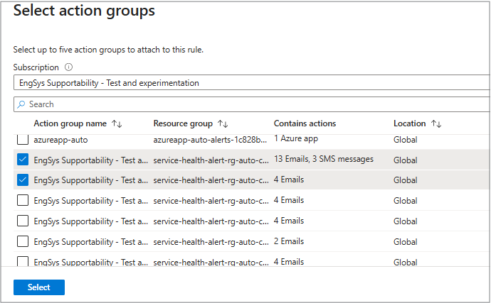 We recommend selecting all Services and all Regions when configuring Service Health alerts. Service Health only triggers alerts when events affect the regions where your services are running. As a result, selecting everything doesn't result in alerts for unused services or regions.