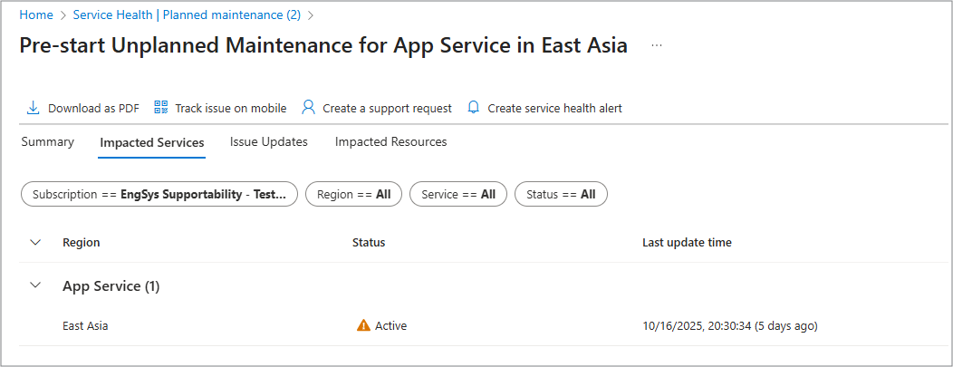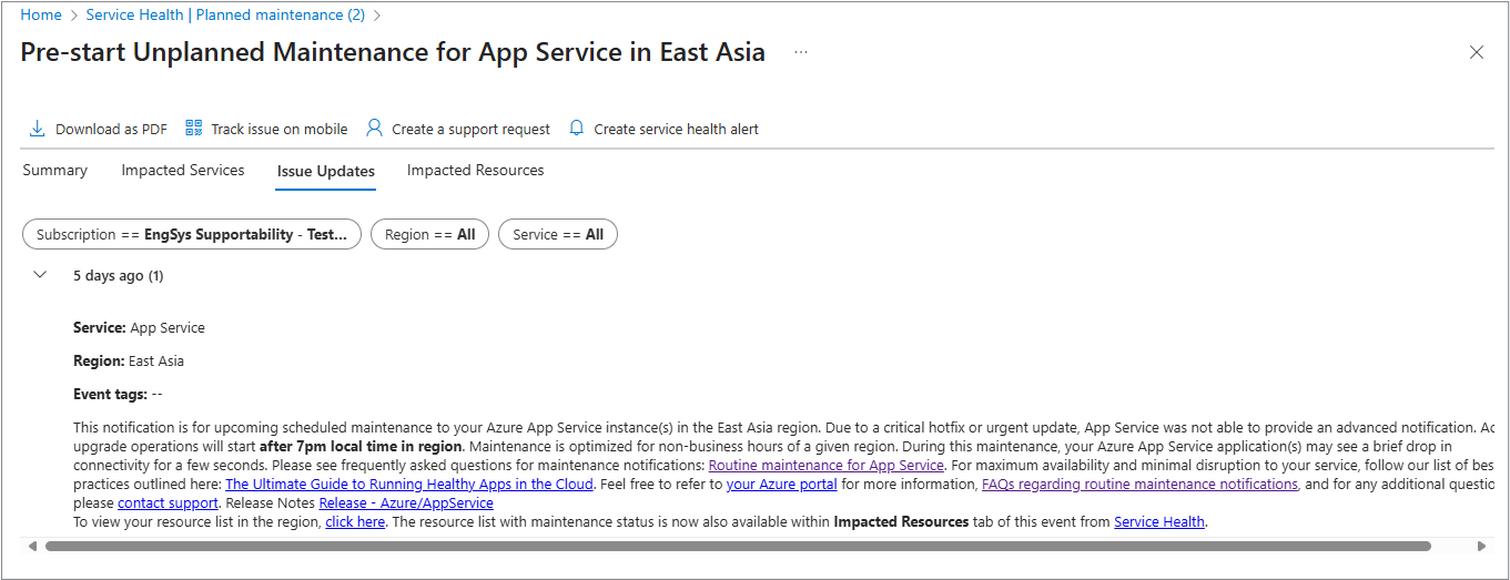 For more information about Impacted resources, see Impacted Resources from Planned maintenance events.