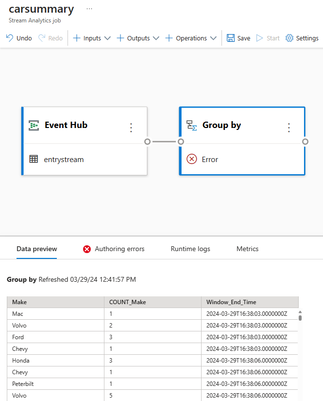 carsummaryand select Create.On the event hub configuration page, confirm the following settings, and then select Connect.