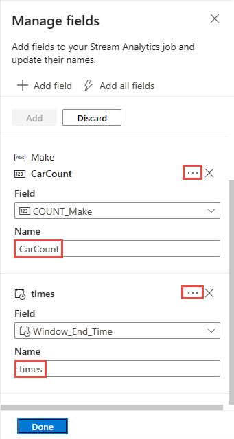 Select Done on the Manage fields page. The Manage fields page should look as shown in the following image.