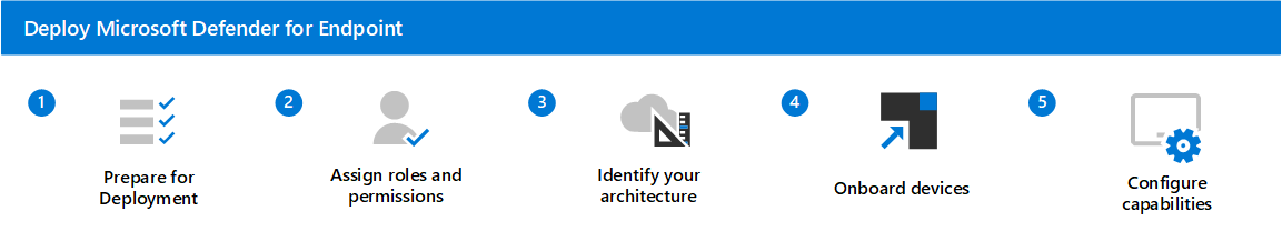 This guide provides five steps to help deploy Defender for Endpoint as your multi-platform endpoint protection solution. It helps you choose the best deployment tool, onboard devices, and configure capabilities. Each step corresponds to a separate article.
