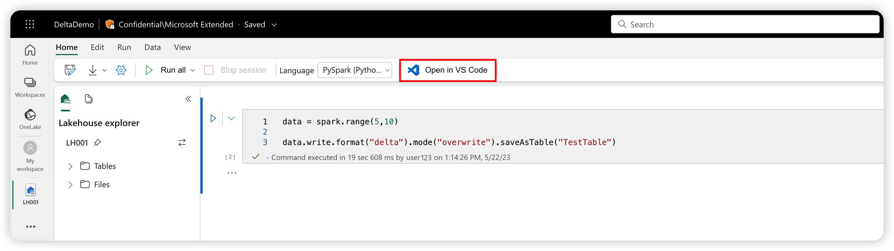 With this extension, you can also run notebooks onto the remote Apache Spark compute for Fabric.