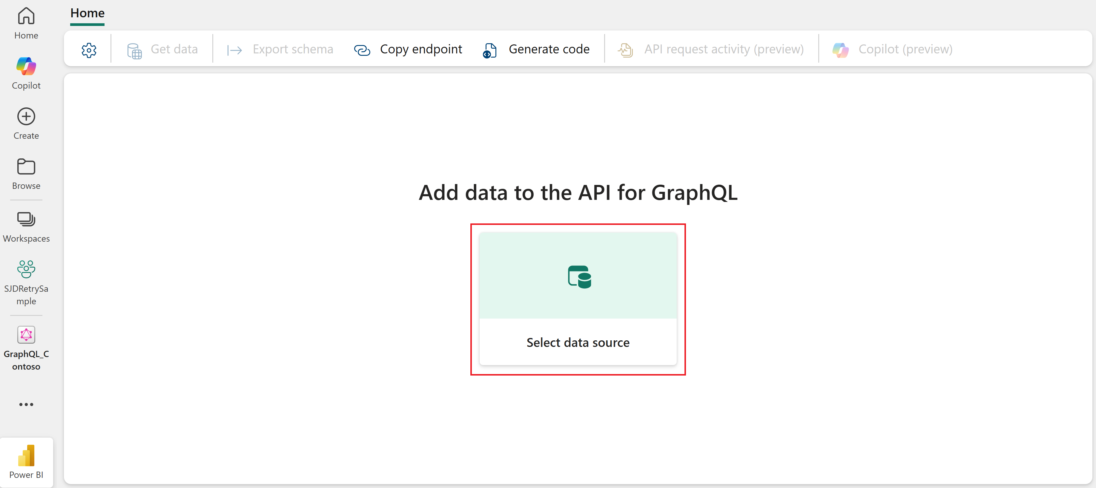 2. Under Add data to the API for GraphQL select the Select data source tile.