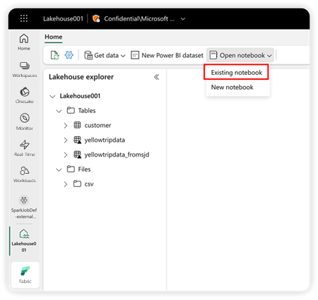 To explore your lakehouse data, you can add the lakehouse to an existing notebook or create a new notebook from the lakehouse.