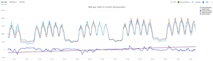 timechart Line graph. First column is x-axis, and must be datetime. Other (numeric) columns are y-axes.