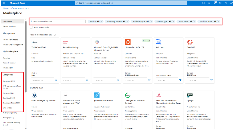 Screenshot showing Marketplace within Azure portal.