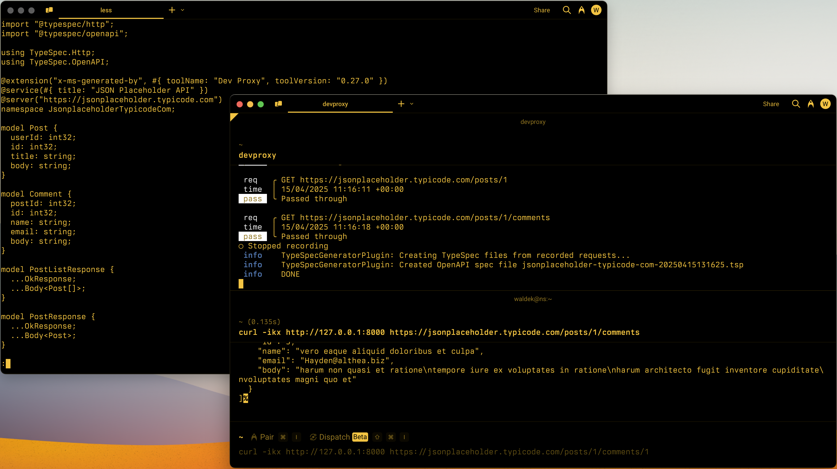 To create better TypeSpec files, consider using a local language model with Dev Proxy. Using a local language model, the TypeSpecGeneratorPlugin generates clearer operation IDs and descriptions, giving you a better starting point for your TypeSpec file. To use a local language model with the TypeSpecGeneratorPlugin, enable the language model in the configuration file. For more information, see Use a local language model.