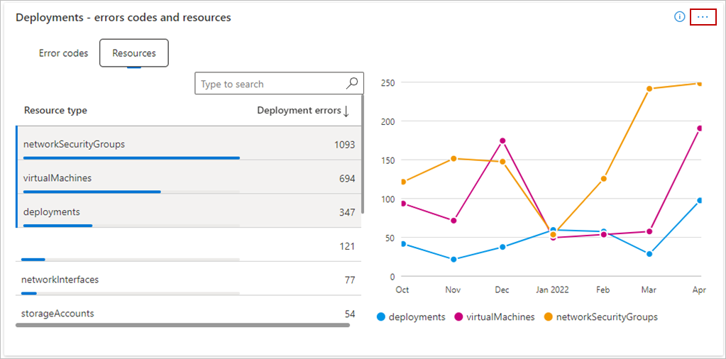 - Sort error codes and resources for deployment failures by basis error count in the table.