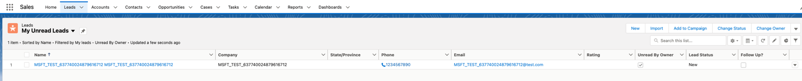 To make sure you've successfully connected to a lead destination, select Validate. If successful, you'll have a test lead in the lead destination.