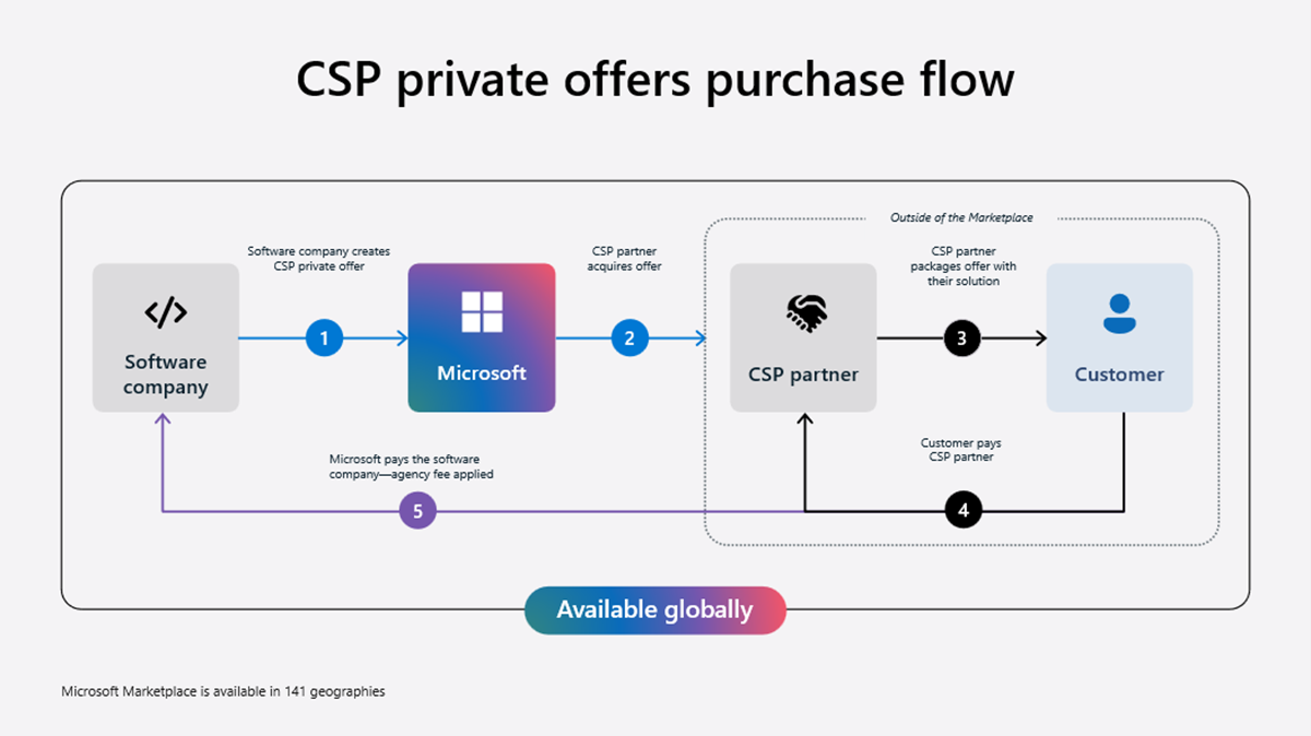 - To learn about the purchase process in the Cloud Offer Provider (CSP) program, see the CSP Partner Private Offer Purchase Process, Private Offers for CSP Partners Overview, and ISV to CSP Private Offer FAQs.