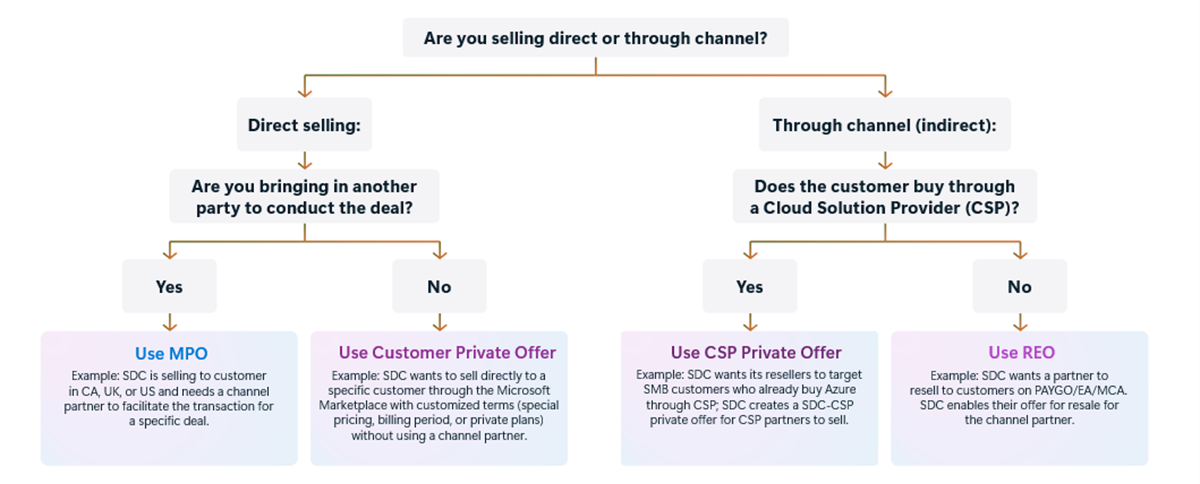 This section of the onboarding playbook (guide) describes options to transact private deals in Microsoft Marketplace. You can find information on what you need to know about the types of private offers: Private offers - customer private offers, Private offer to Cloud Service Provider (CSP), and Multiparty private offers (MPO).