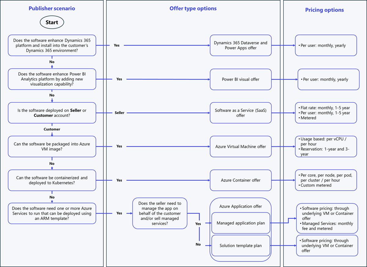 There are various offer types on Microsoft Marketplace. To determine which transactable offer type best suits your needs as a software publisher, let's first look at the various offer types on Microsoft Marketplace.