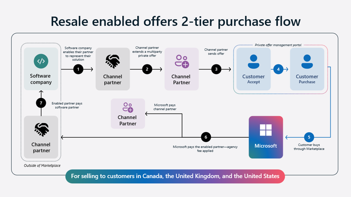To explore further the process of creating and reselling multiparty private offers that reseller partners can make available to their end customers, see Multiparty private offers (for selling partners) - Microsoft Marketplace publisher.